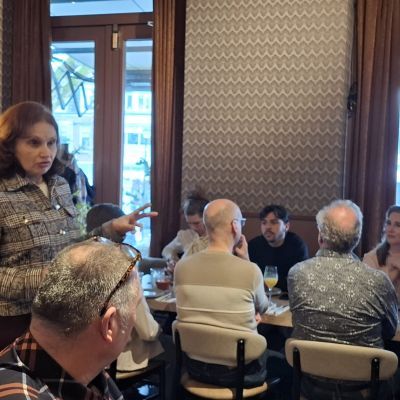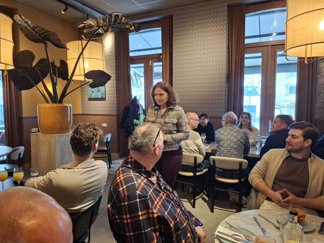 Tijdens de smakelijke lunch ontstonden aan tafel vanzelf de gesprekken. Leden wisselden nieuwtjes uit, legden nieuwe contacten en spraken bij met bekenden. Juist dat informele karakter was de bedoeling van deze bijeenkomst, die op verzoek van verschillende leden was georganiseerd om de onderlinge banden weer eens te versterken.